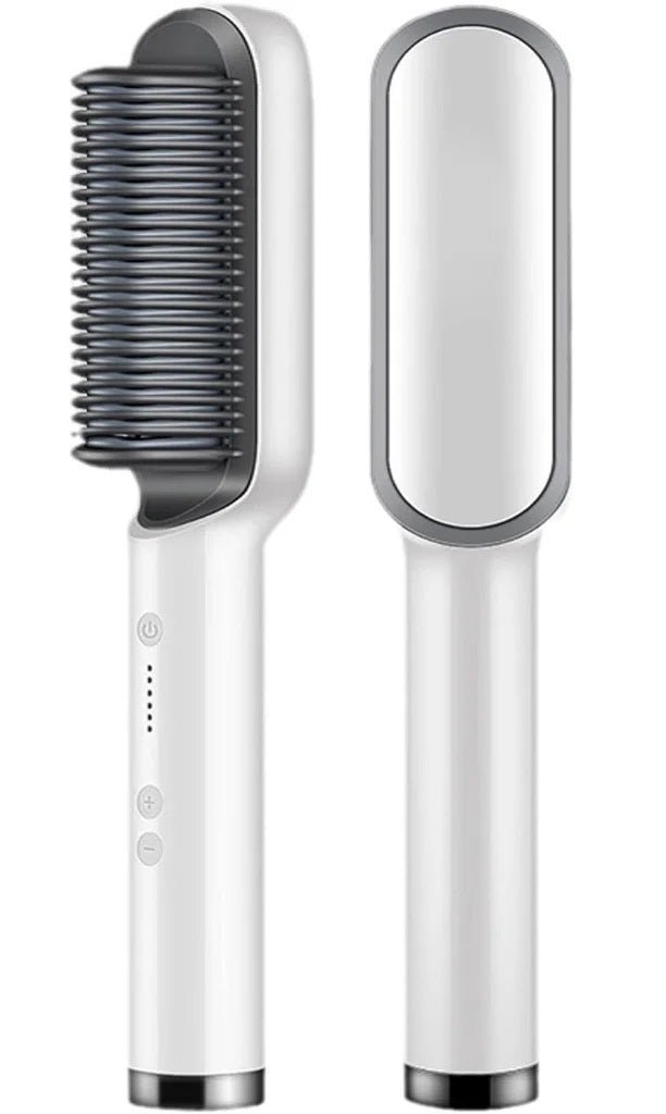 Escova multifuncional que alisa, modela e seca os cabelos. Prática e eficiente, compatível com qualquer voltagem.